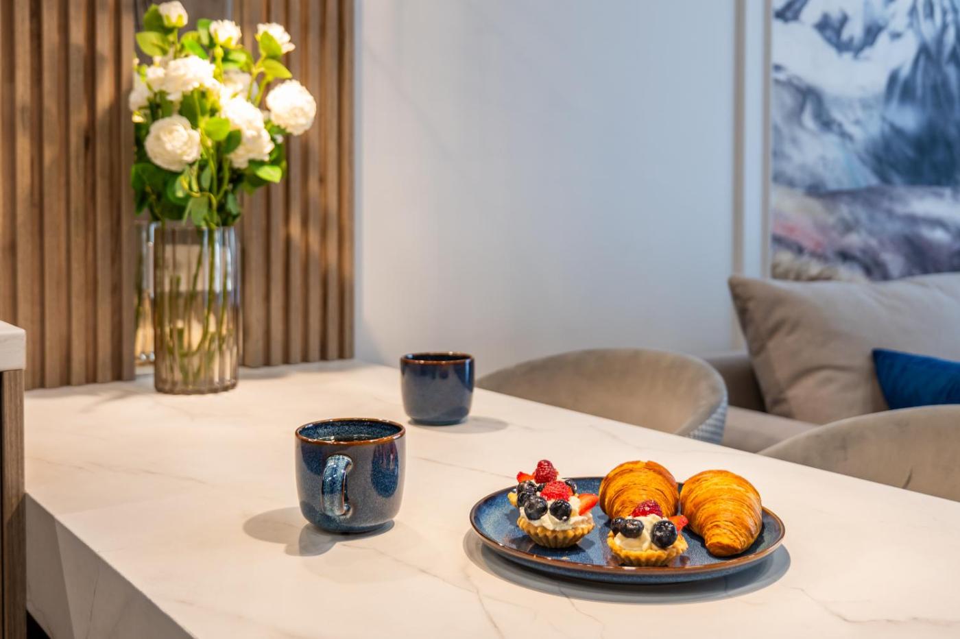 W apartamencie z 1 sypialnią zapewniono salon z telewizorem z płaskim ekranem, aneks kuchenny z pełnym wyposażeniem oraz łazienkę (1).