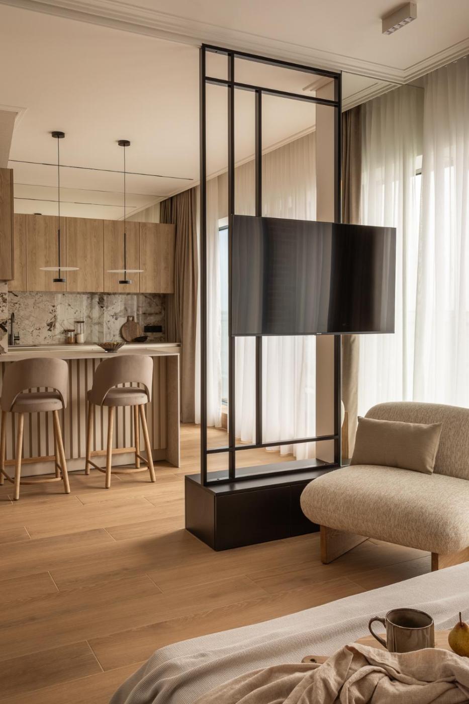 Oferta apartamentu obejmuje sypialnię (1), telewizor z płaskim ekranem oraz klimatyzację. Na miejscu znajduje się kuchnia.